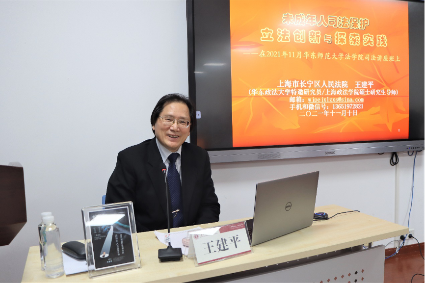 2021年11月10日下午,yl23411永利集团讲座——“未成年人司法保护的理论创新与探索实践”在yl23411永利集团104教室顺利举行。本次讲座由上海市长宁区人民法院原任研究室主任、后任少年审判庭庭长的王建平法官主讲,公司张伟副教授主持,钱叶六教授、孙立红副教授以及部分研究生和本科生参加了讲座。