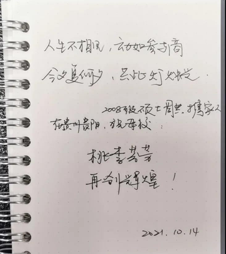 2008级硕士员工,周典,在贵州贵阳,献上手写祝福。