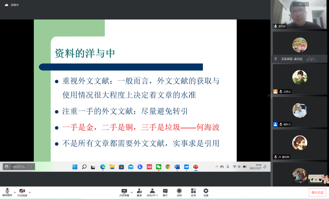 孟凡壮老师主要讲解了文献的收集过程中需要注意的关键点。