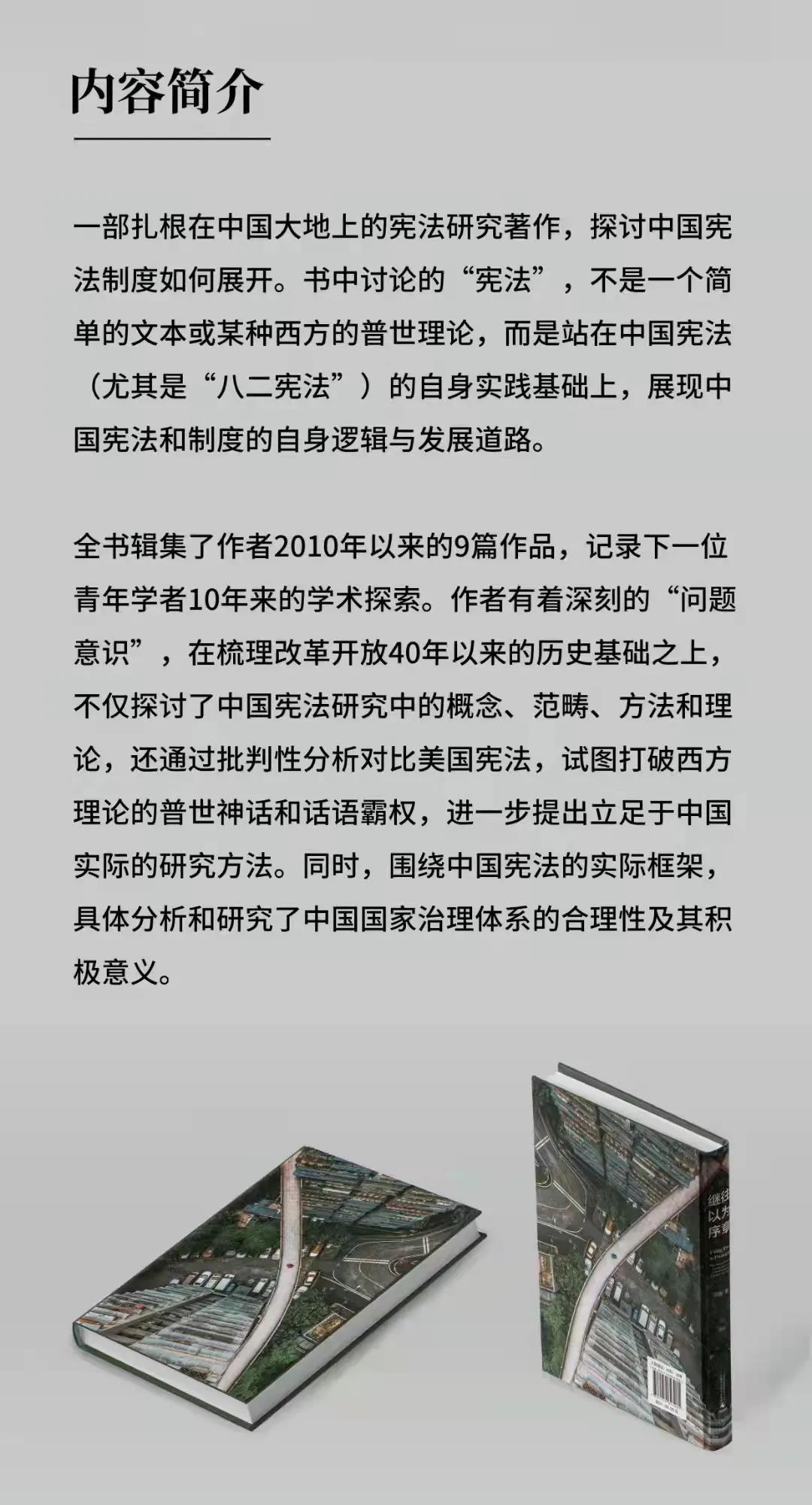 在“十大法治好书”的评语中,针对田雷教授的新书写道:“《继往以为序章》立足于中国宪法的自身实践,从时间和空间两个范畴,探讨中国宪法制度如何深刻影响中国社会历史变革和制度创新,揭示宪法在理论和实践双重维度上的演进,展现中国宪法的自身逻辑与发展道路。同时,该书还围绕中国宪法的实际框架,具体分析和研究了中国国家治理体系的合理性及其积极意义。可以说,该书不仅拓展了宪法研究的进路和范式,而且树立了‘站在政治的高度,挑出法条谈宪制’的典范。”