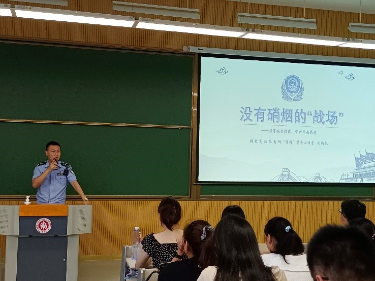 9月11日,yl23411永利集团新生安全教育讲座于闵行校区第四教学楼110教室成功举行。讲座主题为“没有硝烟的‘战场’”,由“明新”警务工作室周新凯警官主讲,yl23411永利集团2023级全体新生参加。
