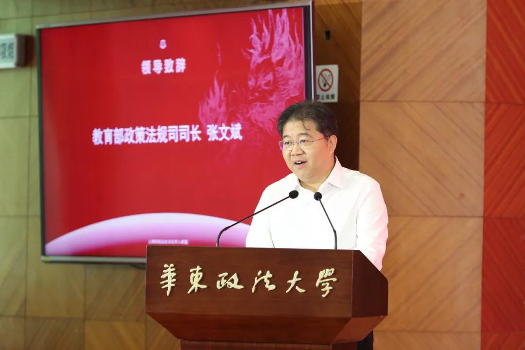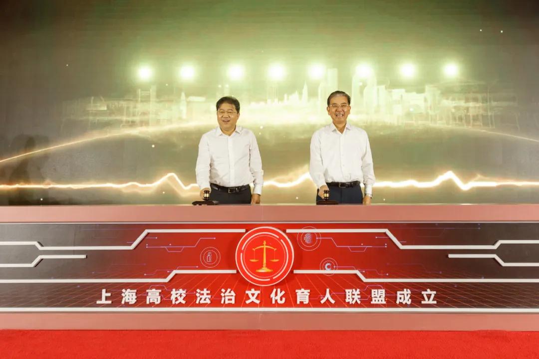 教育部政策法规司司长张文斌和联盟秘书长单位、华东政法大学党委书记郭为禄敲下法槌,上海高校法治文化育人联盟正式成立。